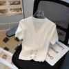 Women's Twist Short Sleeve Pullover Knit Sweater Spring and Summer Round Neck Solid Colour Knitwear