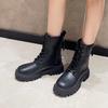 2024 New Casual Lace-up Womens Short Boots Brand Design Thick Sole Ankle Boots Daily Versatile Zipper Punk Style Botas De Mujer