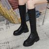 Long Boots for Women Round Toe Western Platform Lace-up Knee High Shaft Shoes Woman with Laces Black Punk Leather Spring Autumn