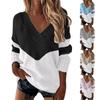 Women's Fashion V-Neck Sweater Loose Casual Solid Color Knitted Sweater