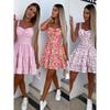 Women Spring Summer Halter Neck Leisure Ruffle Edge Flared Flower Beach Short Dresses