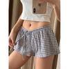 Women's Summer Plaid Stripe Belt Loose Casual Shorts