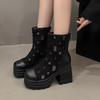Black Gothic Style Platform Ankle Boots for Women Thick Bottom Breathable Summer Boots Woman Punk Chunky High Heels Booties