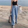 Høyt midjete vidbensimiterte tennisjeans for sommerklær for kvinner, tynn drapert stil løs is silke rette bukser