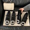 Inner heightening rhinestone suede black single shoes women's shoes 2024 autumn and winter with skirt plush Mary Jane fluffy shoes