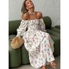 Women Summer Off Shoulder Bohemian Beach Maxi Dresses Print Boho Long Dress