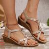 2025 summer new wedge heel sandals women's round head open-toed fashion beaded bohemian sandals women