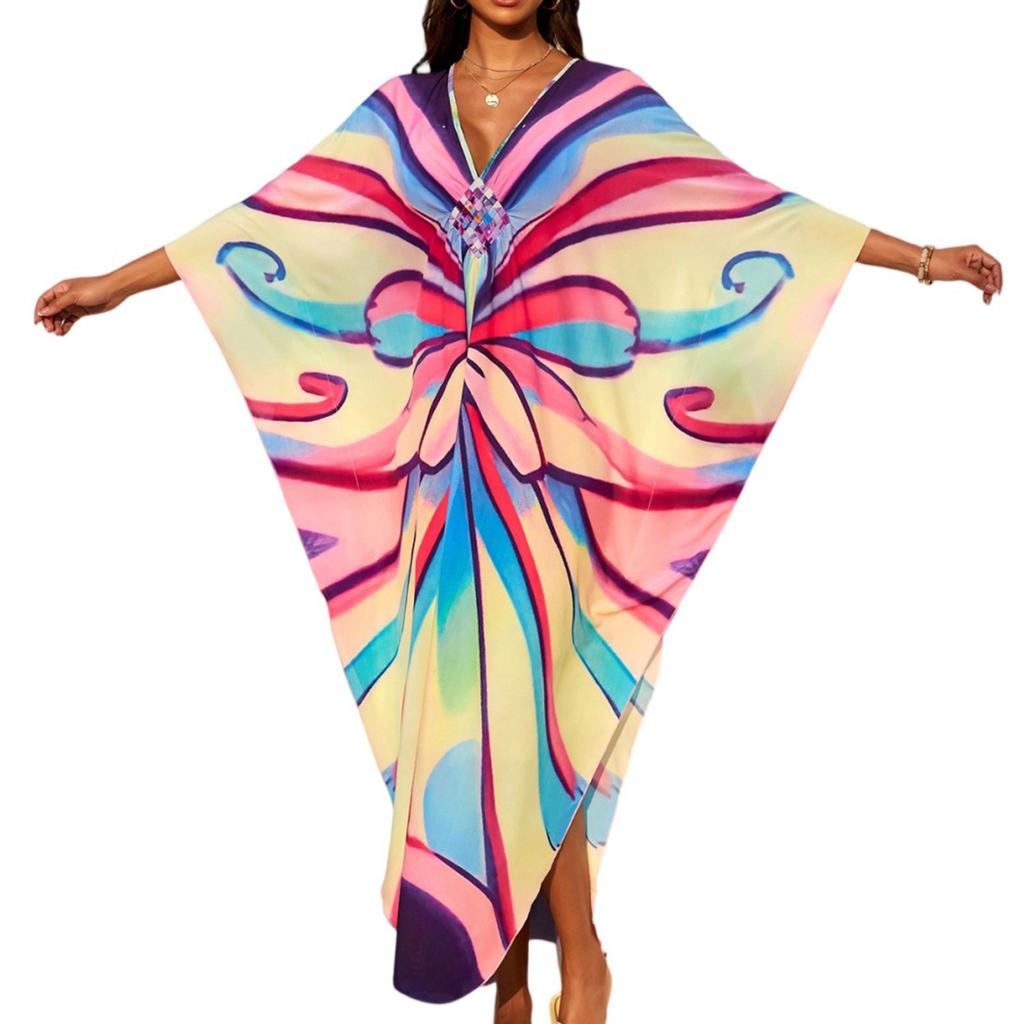 Damekjole, Fargerike blomstertrykk, Ferie Løs kåpe, Bikini, Solbeskyttende smekkekjole