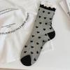 Lolita Invisible Socks Women Girls Summer Silk Lace Socks Crystal Silk Love Heart Ankle Socks Black White Transparent JK Sock