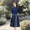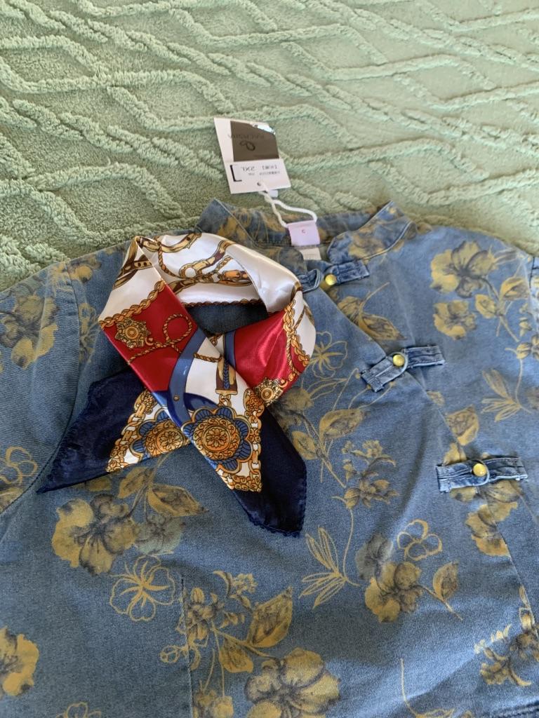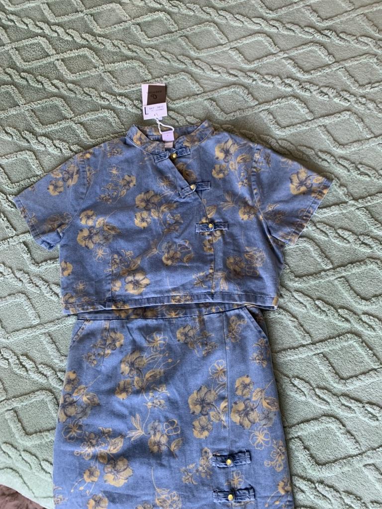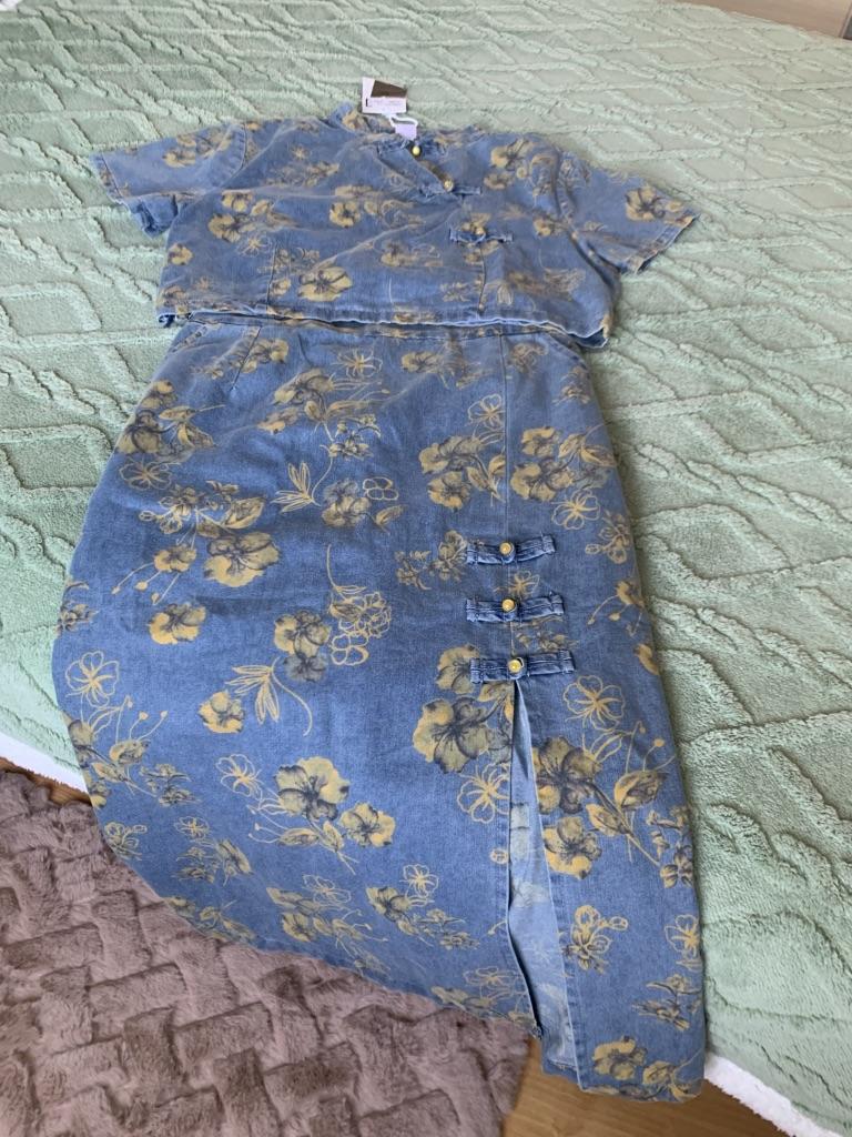 Fashion Chinese Style Denim Skirt Set Women Summer Floral Print Two Piece Outfit with Knot Buttons