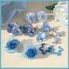 Dripping oil blue flower earrings high sense temperament versatile new stud earrings fashion Internet celebrity niche earrings women