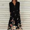 Women's Summer Casual V-Neck Button Vintage Floral Print Three-quarter Sleeve Long Dress With Pockets