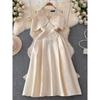 Accessible Luxury Fashion Shoulder-Baring A- line Large Hem Dress Halterneck