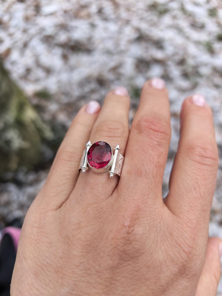 Naturlig Rosa Rubellitt Edelsten 925 Sterlingsølv Smykker Håndlaget Dame Ring