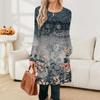 Kvinners avslappet mote langermet grafisk trykt vintage kjoler med lommer