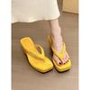Fashion Summer New Brand Women Slipper Fashion High Wedge Heel Ladies Elegant Slides Square Toe Slip on Dress Flip Flop Zapatos Mujer
