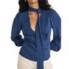 - Neckline: Tie Neck, V Neck.