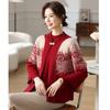 Middle-aged and Elderly Women's Sweater Set Mom Fashion Printing Two-piece Loose Knitted Sweater