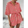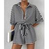 European and American Summer New Lapel Single-Breasted Stripe Print Loose Short sleeve Wide Leg Jumpsuit Shorts Jumpsuit