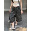 Kumikumi American Camouflage High Waist Cargo Jeans Women's Autumn Retro Washed Straight-leg Cropped Pants Loose Pants