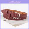 This edgy faux leather belt features rivet decor and a metal pin buckle, adding a bold touch to trendy outfits. Made of synthetic leather. The alloy buckle ensures durability and secure fitting. Ideal for casual or streetwear styles, it enhances modern fashion looks. Wipe clean with a damp cloth for maintenance.