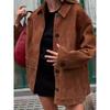 Women's Faux Suede Button Jacket Oversized Gathered Hem Short Length Coat Casual Vintage Outerwear With Pockets