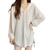 Gjennomsiktig Cool og Koreansk Lang Tykk Lagdeling Vår Ensfarget Hawaiisk [J.STORE] Dame Skjorte, Sommer/Vår Topp, Gjennomsiktig, Hurtigtørkende, Stil, Erme, Søt,