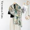 VICTORIA&VERA Retro Ink Print Mulberry Silk Small Square Scarf