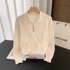 Lapel retro inner knitted women's spring and autumn new long-sleeved pullover sweater bottoming shirt slim-fitting and thin top
