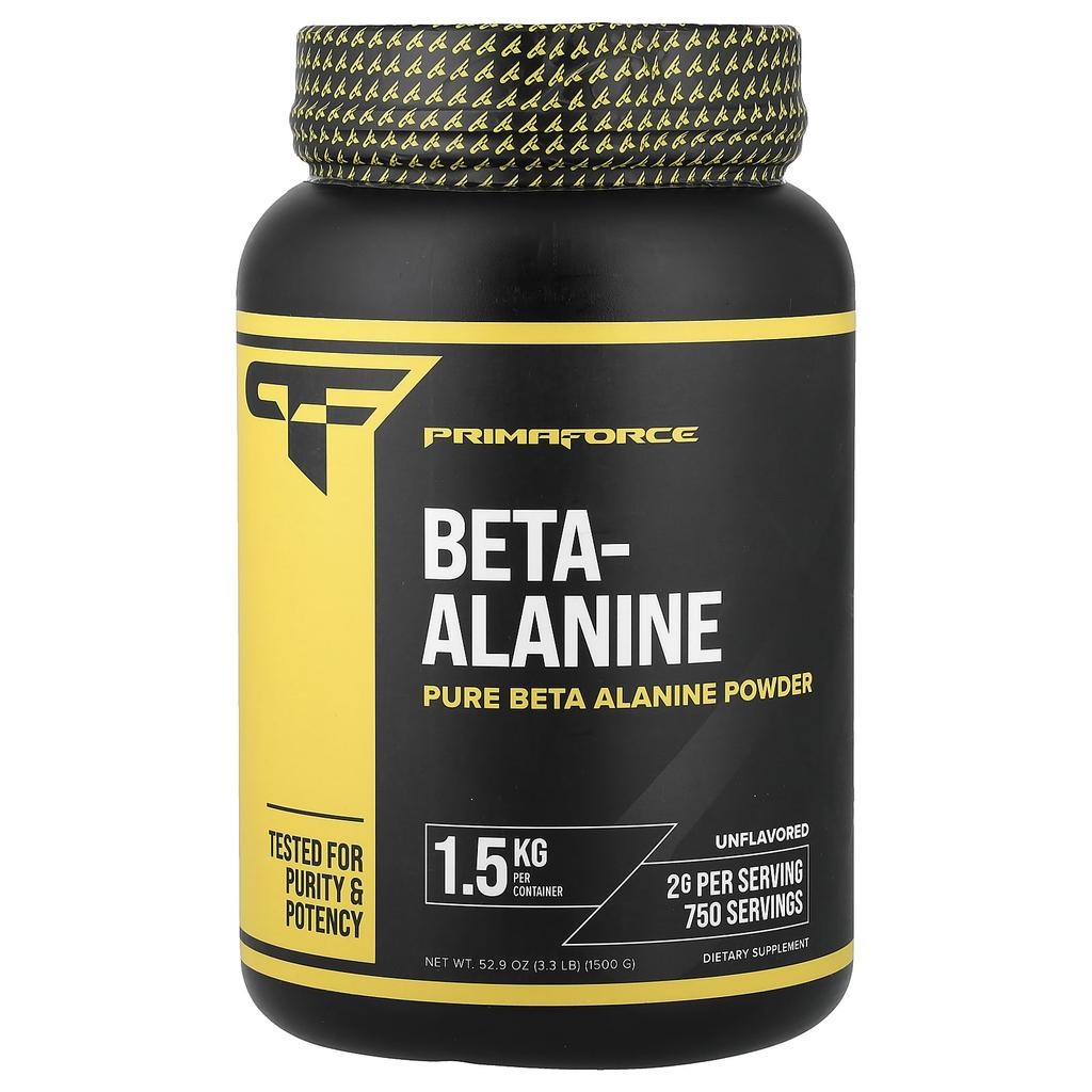 Product Description: Pure Beta-Alanine Powder, 2g per serving. Supplement tested for purity and potency. PrimaForce® Beta-Alanine has been scientifically proven to enhance athletic performance during high-intensity exercise. It helps build muscle mass and improve endurance. It is even more effective when taken with creatine. Beta-alanine is essential for the production of carnosine, a protein building block that helps prevent aging and promotes efficient muscle function and development. This amino acid is known to increase endurance and strength during exercise by reducing muscle fatigue, thereby promoting muscle growth. Beta-alanine is particularly effective for enhancing the performance of short, high-intensity exercise sessions, such as weightlifting.