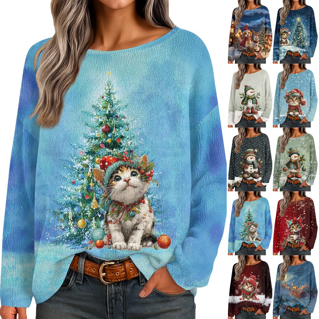Womens Fall Sweaters Long Sleeve Print Tops Pullover Sweaters Loose Dressy Casual Basic Clothes