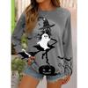 Round Neck 3D Ghost Printed Top Casual Long Sleeved Women's T-shirts - Soft Medium Stretch Polyester Fabric Spring and Autumn Relaxed Fit Clothing