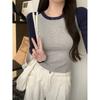 Early autumn new unique super good-looking contrasting colors front shoulder tight small long-sleeved inner bottom short T-shirt top