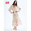 HM Women's Clothing Florals Dress 2025 Fall New Arrival Asymmetrical Swing Collar Stylish Dress 1284563