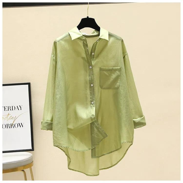 Женские свободные универсальные летние топы с защитой от солнца в корейском стиле, повседневные однотонные топы, модная простая шикарная верхняя одежда, тонкие мешковатые