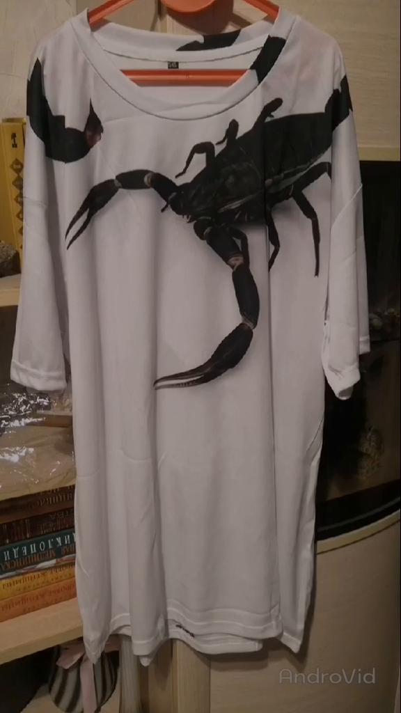 🦂👕👌 КРАСОЧНАЯ СИНЯЯ ФУТБОЛКА СО СКОРПИОНОМ🦂👕👌 👉Жми на СЛАЙД ШОУ! Это уже вторая футболка с великолепным скорпионом, которую я с удовольствием купила и ношу. О первой футболке в малиновом цвете я уже рассказывала в своем профиле от 29 июня 2023 года. Но у этого продавца малиновой футболки в наличии нет, поэтому мне пришлось ее взять у другого продавца. А в этом магазине я купила синюю. Нет, это не мой знак Зодиака, просто мне очень футболка понравилась! Она клёвая. Такая яркая и красочная, что глаз не оторвать) Футболка выполнена из полиэстера. Сразу скажу, что на жару она не пойдет. Её комфортно будет носить в прохладную погоду, а не в палящий зной. Материал хоть и тонкий, но он имеет парниковый эффект. Поэтому рекомендую носить футболку до 23-х, максимум до 25 градусов тепла. Но зато футболка не мнётся как чистый хлопок. Ещё хочу заметить, что эта модель мужская. И я переделала эту футболку под себя. Она оказалась слишком длинной на мой рост 170 см. Поэтому в ателье мне укоротили длину, которая была 76 см, до 60-ти см. Плюс ко всему мне футболку ещё и приталили и села она уже по фигуре. В переделанном виде футболка мне нравится больше. На свои параметры 110-95-118 см я заказала размер 3XL. Таблица продавца оказалась верной, но всё равно футболку пришлось переделать. Фото до переделки можно увидеть в отзывах покупателей, либо у продавца. Там показан прямой силуэт. И рассчитан он для мужчин, как я говорила. Изображение черного скорпиона несомненно является главным украшением этой футболки. Выполнено оно как 3D. Это фотопечать, не краска. Скорпион будто живой обвивает мои плечи. Эффект потрясающий! Изображение скорпиона есть и сзади на футболке. Я влюбилась в эту модель! Вообще у продавца представлен широкий выбор цветовой гаммы и я была в затруднении что предпочесть. Помимо малиновой и синей футболки ещё мне понравилась красная, белая, зелёная и жёлтая. На мой взгляд эти модели у продавца просто бомба! Рекомендую приобрести такую футболку не только представителям этого знака Зодиака, но и просто всем тем, кто любит оригинальные, яркие вещи. У меня их уже две!) 🎼🎵🎶В слайд шоу использована композиция "Maybe I Maybe You" в исполнении группы Scorpions.