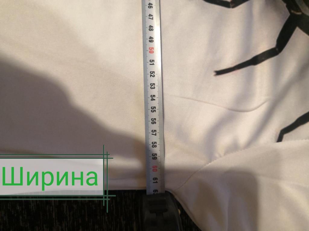 Футболка неплохая, но размерной сетке не соответствует. Маломерит. Ширина 122 против 132 у продавца, плечи 58, а не 62, длина 75, а не 80. Сильнее всего подвела ширина, конечно. Ткань довольно тонкая, синтетическая, шелковистая но ощупь. Печать не такая чёткая, как на фото, более расплывчатая по границам. Обработка швов внизу с огрехами.