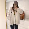 Зимние женские толстовки, топы, осенняя корейская мода, свободная уличная одежда с вышивкой животных, плюшевая толстовка на молнии