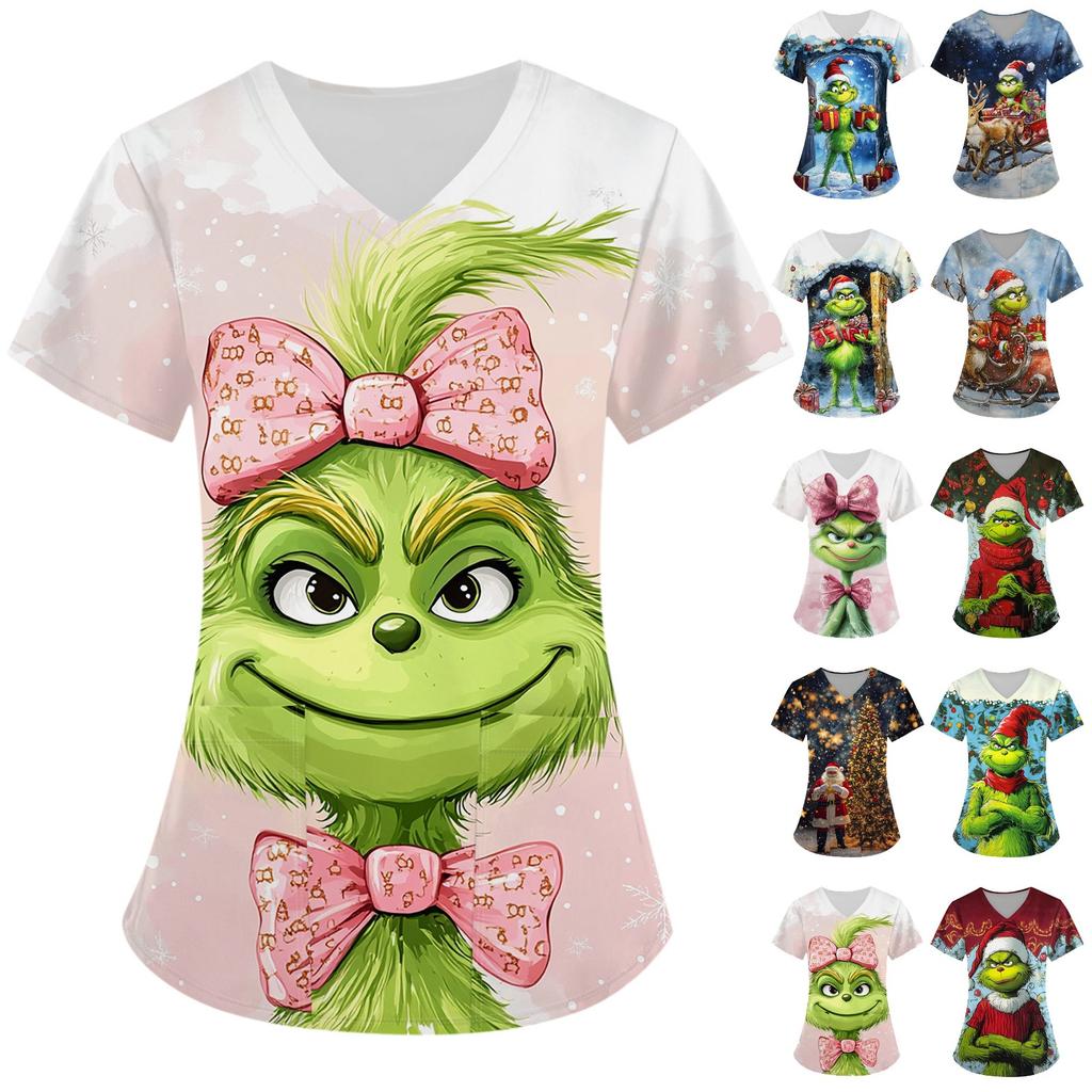 Женский топ с карманом и коротким рукавом с крестом и V-образным вырезом