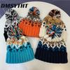 Women Autumn and Winter Nation Fashion Pure Handmade Fringed Dopamine Plush Colorful Ball Thick Hollow Out Ear Protection Knitted Pullover Hat