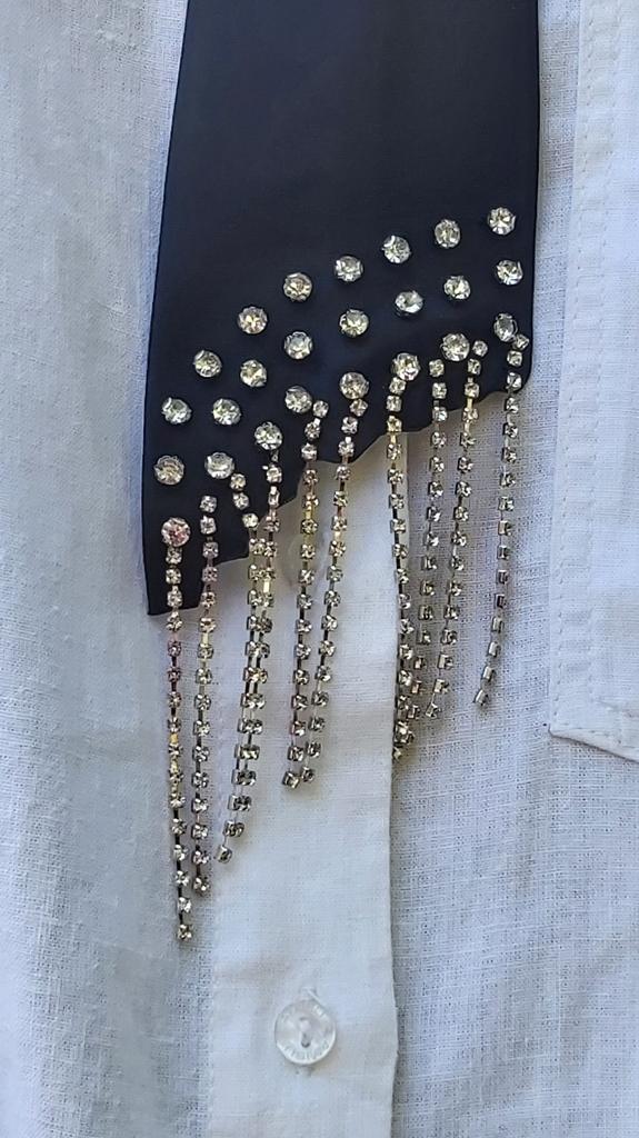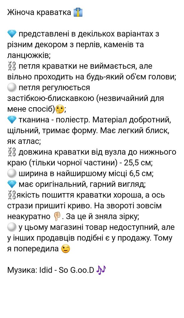 Галстук цікавий, але замок зламаний і не застібається і це розчаровує. Бусини хаотично пришиті в ручну.